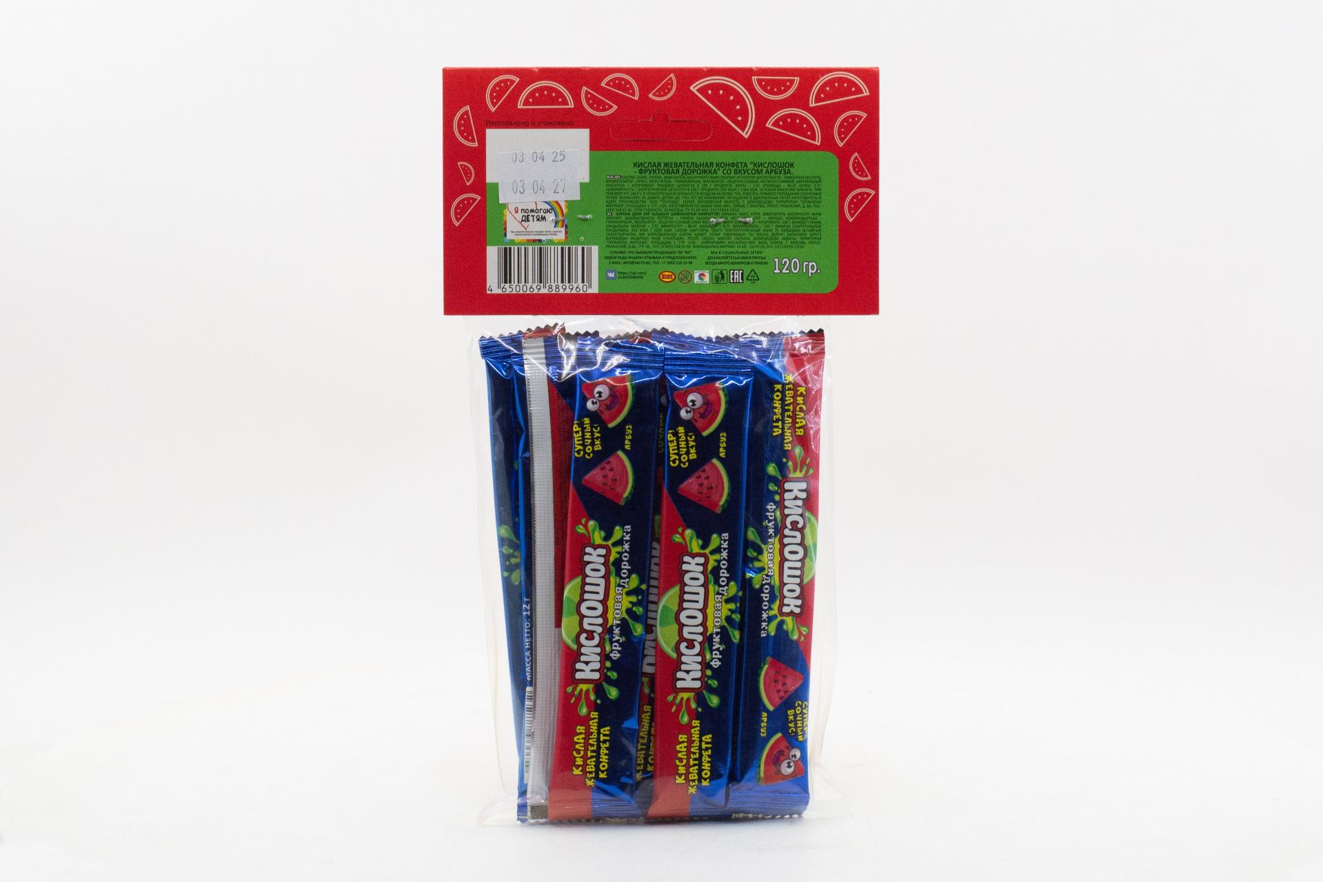 Кислая жевательная конфета Кислошок - фруктовая дорожка 10 со вкусом арбуза (Россия) 120г0,00 руб. за штуку (в упак. 36 шт.) |