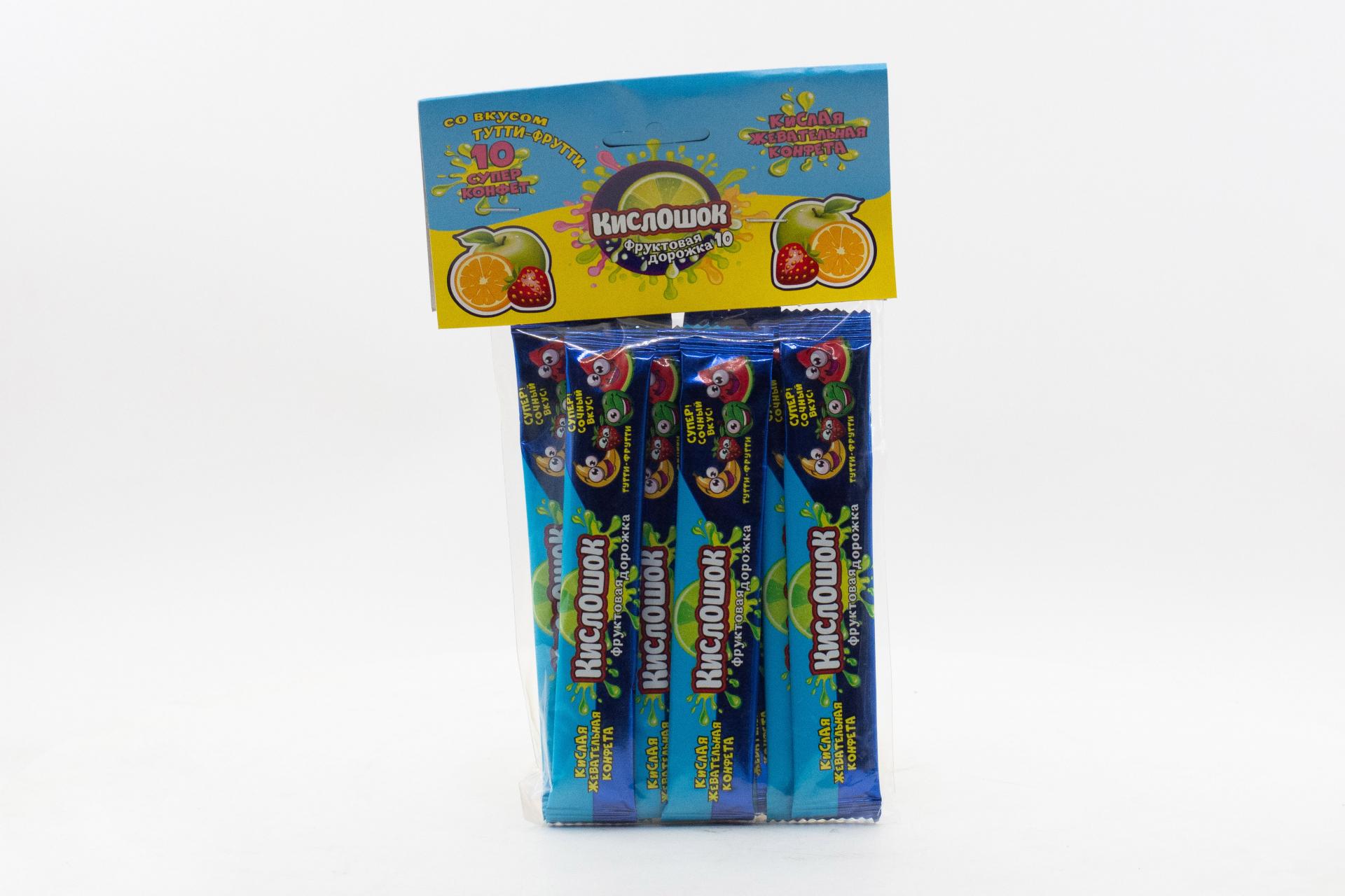 Кислая жевательная конфета Кислошок - фруктовая дорожка 10 со вкусом тутти-фрутти (Россия) 120г0,00 руб. за штуку (в упак. 36 шт.) |